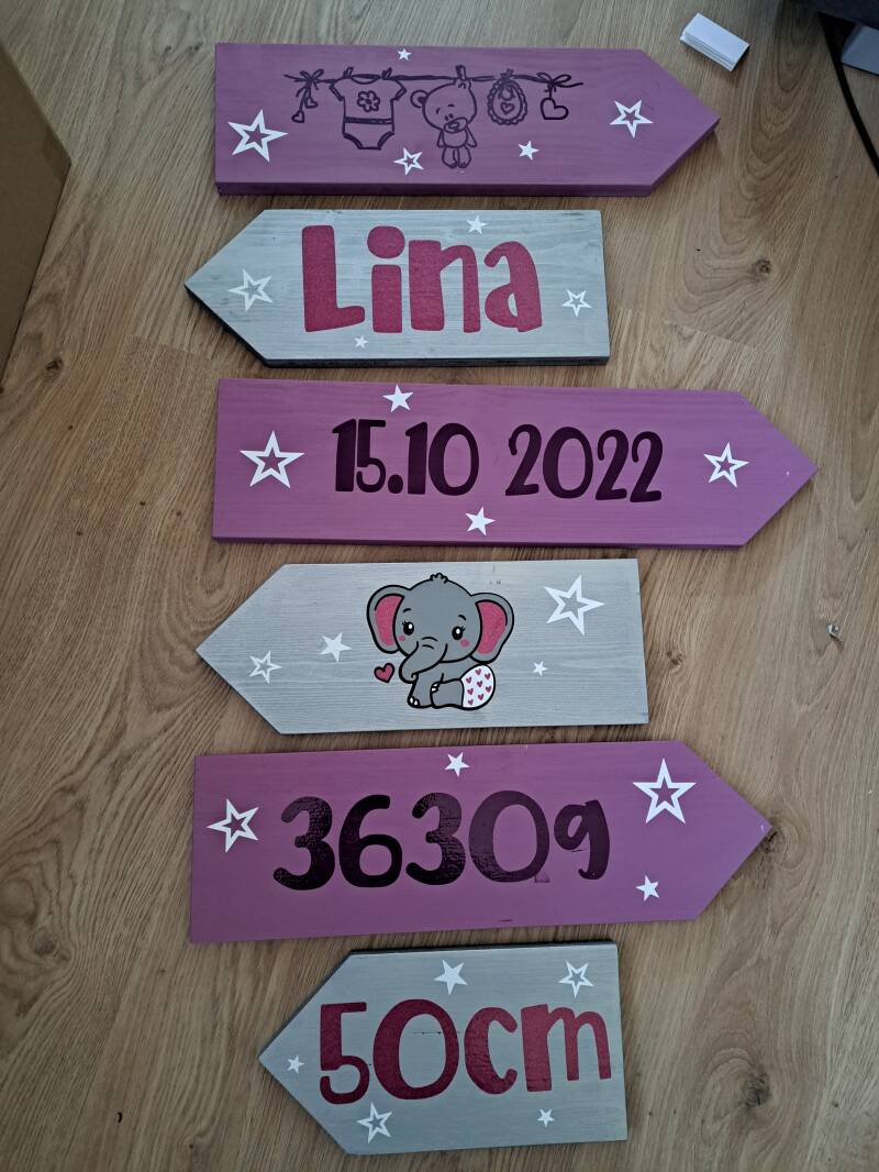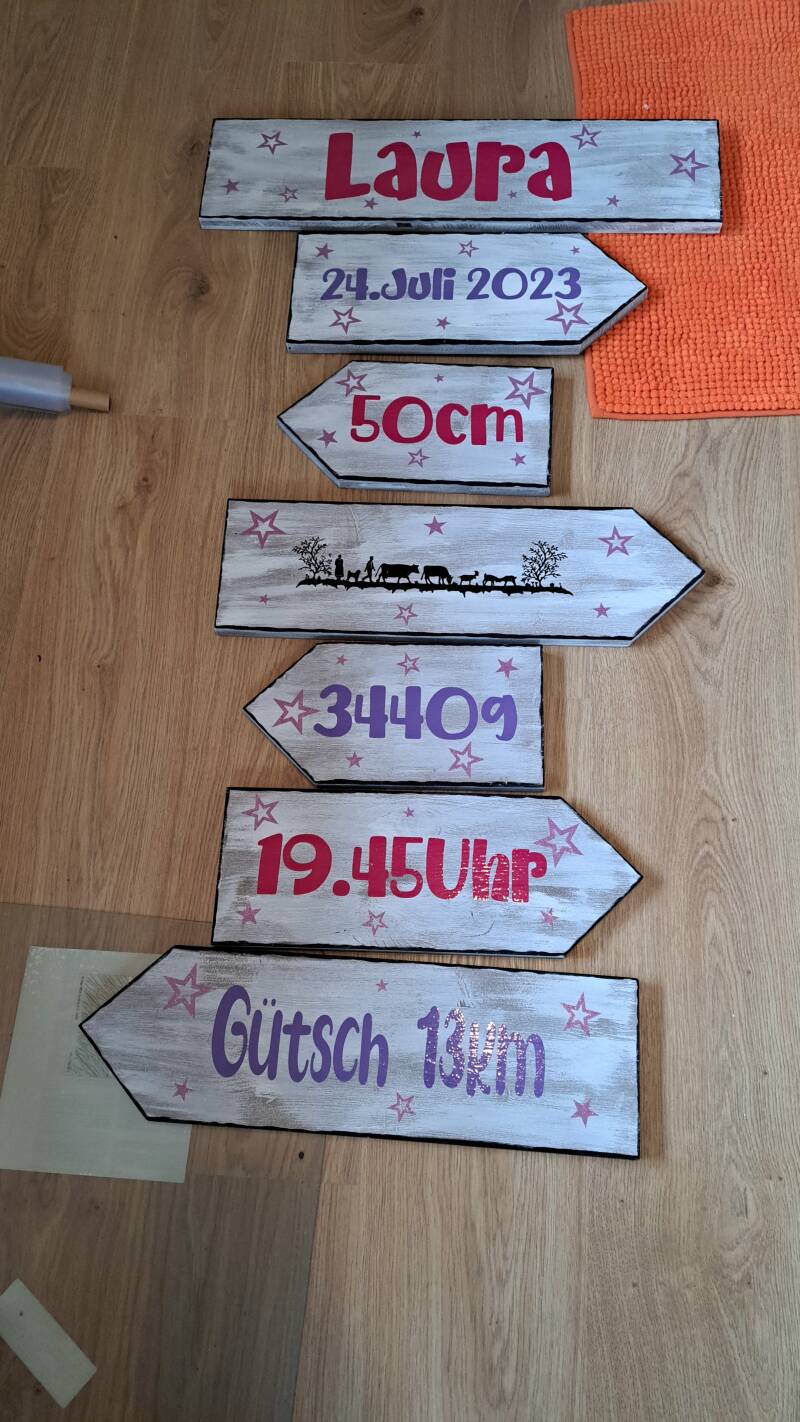 Mit viel Liebe werden diese schönen Geburtswegweiser gestaltet um das neue kleine Wunder willkommen zu heissen.