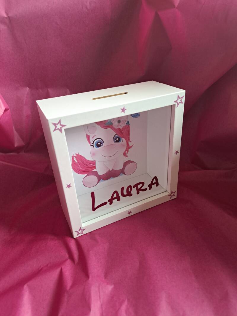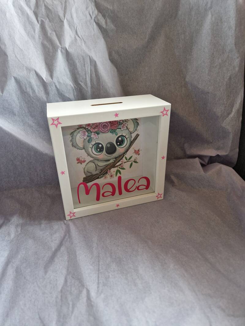 Sparkässeli 3D Rahmen Rückwand abnehmbar. Personalisiert mit Namen, diverse Tierbabymotive zur auswahl.